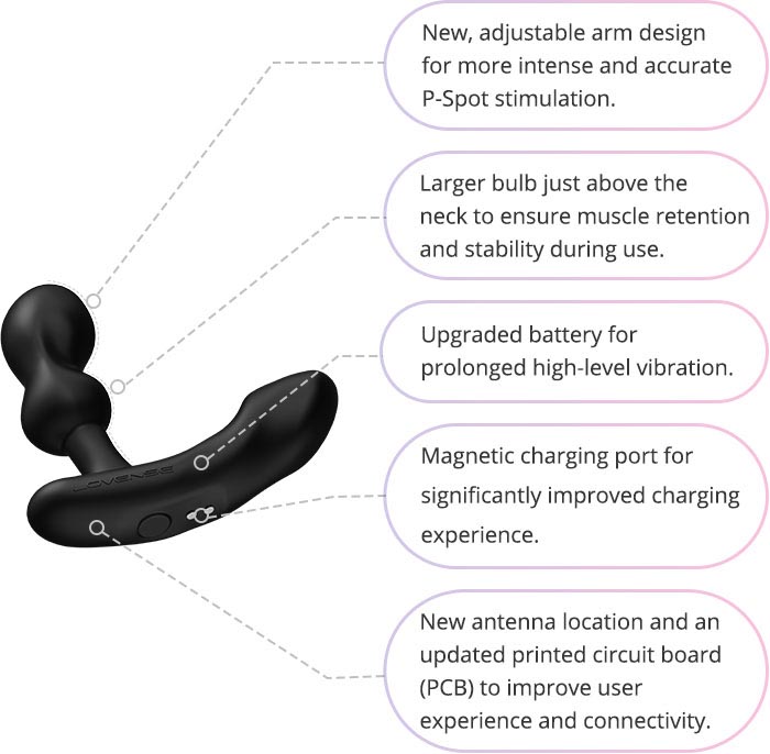 Edge 2Edge 2 нь өмнөхөөсөө илүү дур булаам болгохын тулд нэлээд хэдэн тохируулгатай байдаг. Соронзон цэнэглэх порт нь цэнэглэх процессыг илүү хялбар болгодог. Антенны оновчтой зохион байгуулалт, дизайн нь илүү тогтвортой холболтыг баталгаажуулдаг. Тохируулж, суулгаж болох гарны давуу талыг сайжруулахын тулд бид Edge 2 -ийн загварыг хүзүүний дээд талд том чийдэн хийж шинэчилсэн. Энэ нь илүү тогтвортой байдал, бүр илүү хүчтэй P-Spot өдөөлтийг өгдөг. Сайжруулсан батерей нь хэрэглэгчдэд хамгийн урт түвшний чичиргээг эдлэх боломжийг олгоно. Та энэ туршлагаа алдахыг хүсэхгүй байна